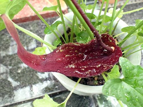Top リュウキュウハンゲ リュウキュウハンゲの花が咲きました。 この個体はだいぶ前に沖縄から取り寄せたものです。 最初の内は葉ばかり繁ってなかなか花が咲かなかったのですが、肥培すると簡単に花がつきます。肥培、つまり肥料をしっかり与えると良いわけ…