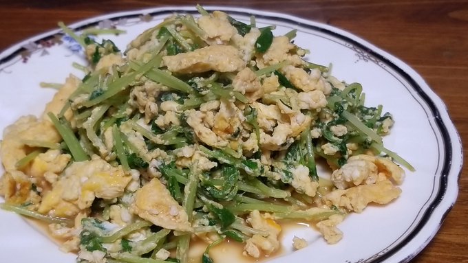 豆苗と卵の 炒め物。