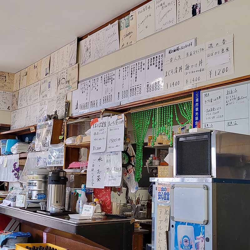 こちらでまぐろ漬け丼を三人ともいただきました。